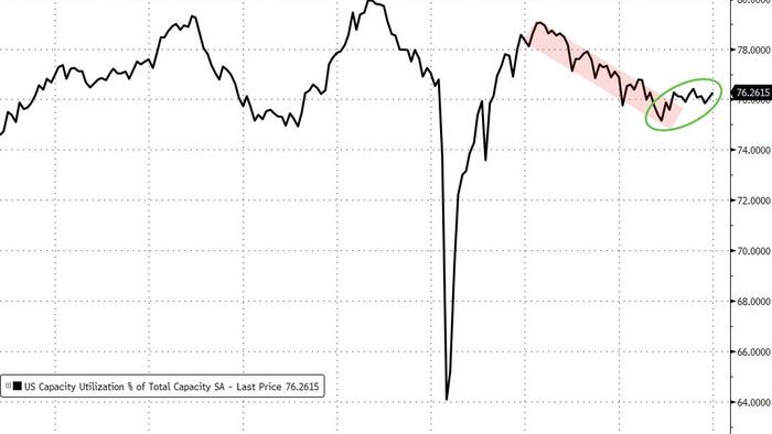 Capacity Utilization also rebounded in December, seemingly breaking the downtrend…