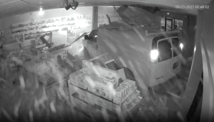 Video shared by Bricks & Minifigs Grand Rapids, a Lego resale shop, shows the incident that took place early Saturday morning. Headlights can be seen through the store’s windows prior to the cargo van barreling in, sending debris flying.