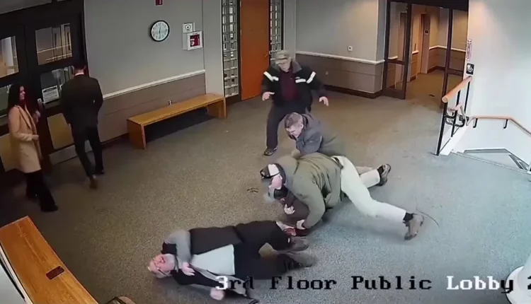 The older man who was knocked down remained lying on his back during the apprehension, and it took a minute or so for him to receive help, the video showed. It’s unclear if he was injured.