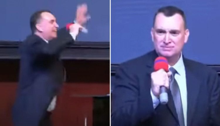 Video shows Boelter continuing to jump up and down, shouting and praising God as he shared his message.