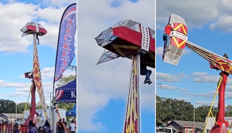 Video shows Texas carnival worker clinging to amusement ride in midair to protect child after mishap