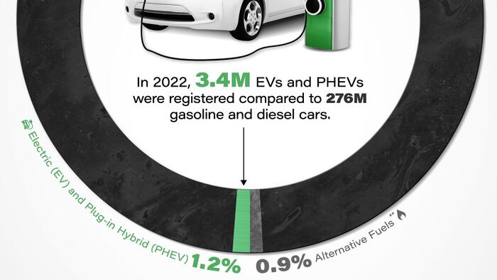 In this graphic, Visual Capitalist’s Marcus Lu and Sabrina Lam visualize light-duty vehicle registrations in 2022, broken out by fuel type. It shows that out of the 281 million cars registered nationally, electric (EV) and plug-in hybrid (PHEV) vehicles represented only 1.2%.