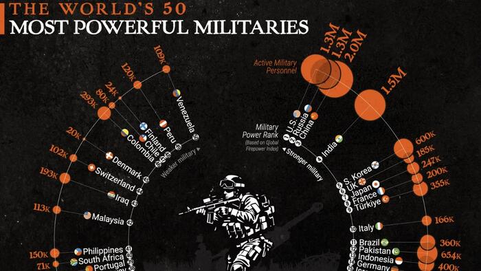 This infographic, via Visual Capitalist’s Bruno Venditti, ranks the world’s most powerful militaries in 2025.