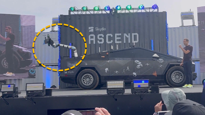 “You can watch the full keynote in the link below, or just check out these sick highlights of the Cybertruck-mounted robot arm snatching F10 out of the air, R10 flying through <10″ gaps with ease, and X10s going off out of Docks like fireworks,” Bry wrote on X.