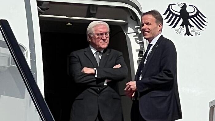 Arriving slightly ahead of schedule, Steinmeier waited in the blazing sun at the door of the Bundeswehr’s Airbus A350 for almost half an hour before Sultan al-Muraichai, Qatar’s minister of state for foreign affairs, arrived to receive Germany’s head of state.