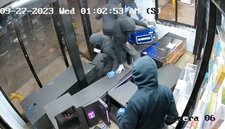 Police say that the group of thieves escaped in a silver sedan after ransacking the store.