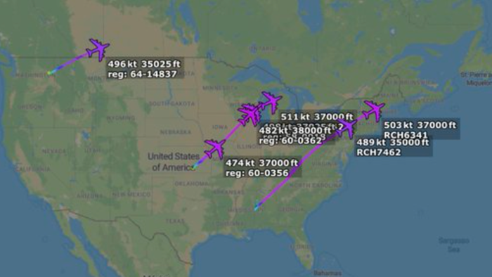 We are seeing a large deployment of USAF aerial refueling tankers currently crossing the Atlantic toward Europe. Other assets are airborne which are not visible on ADS-B tracking data. pic.twitter.com/h9wgEaI6xe