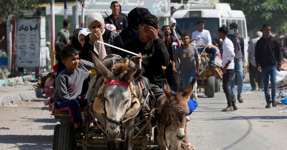 DEIR AL-BALAH, Gaza Strip (AP) — Some fled home with suitcases jammed with clothes and heirlooms and photographs. Some left with stacks of foam mattresses tied to car roofs. They took buses and vans and cars and carts pulled by donkeys.