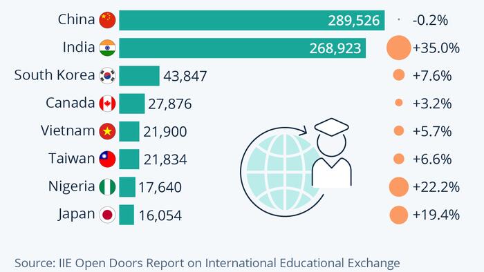 As Katharina Buchholz of Statista further notes, International students make up 5.6 percent of the total U.S. student population, up from 4.6 percent one year prior. They contributed around $40 billion to the American economy in 2022/23.