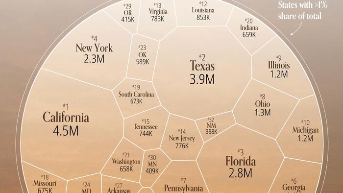 2 Texas 3,910 3.9M 10.4