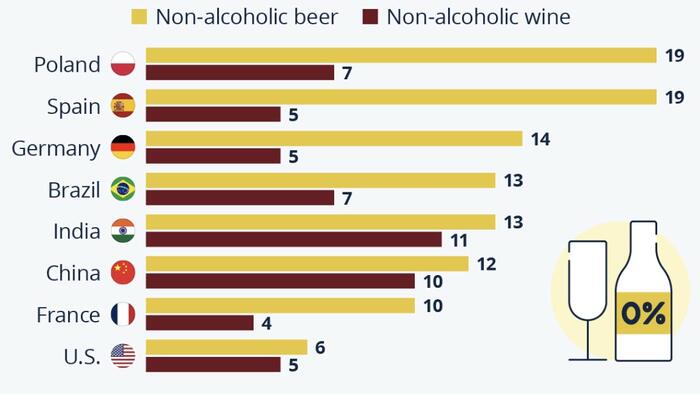 Non-alcoholic beer appeared to be more popular: in Poland and Spain, for instance, almost one in five people surveyed (19 percent) said they consumed the beverage regularly. They were 14 percent in Germany, and 13 percent in Brazil and India.