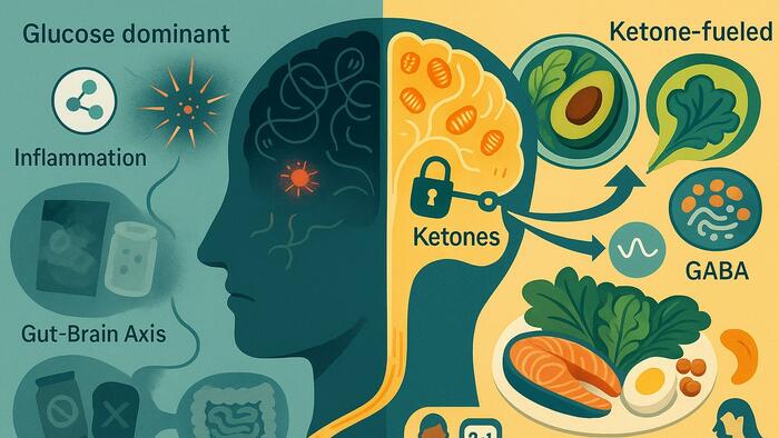 Ketones directly calm inflammatory pathways linked to psychiatric disorders. In the brain, they provide an alternative energy source when glucose is low and boost GABA, a calming neurotransmitter, acting somewhat like a mild anti-anxiety medication.