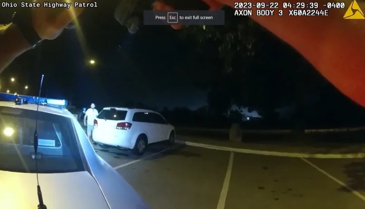 The bodycam footage of the Ohio state trooper who found Karhut shows him waiting for Karhut’s van for about eight minutes. His shadow is seen against the van.