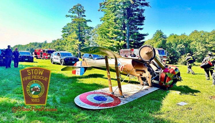 “Upon arrival, crews located a World War I era Nieuport 28, a single engine plane, at the end of the runway that was upside down on its roof,” the Stow Fire Department said.