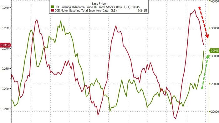 Total Cushing stocks are their highest since July 2024 while total gasoline stocks tumbled to their lowest since the start of the year…