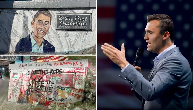 Under the cover of darkness, vandals defaced the memorial, writing messages like “a good Nazi is a dead Nazi” and “womp womp.” The phrase “Free Palestine” was scrawled across Kirk’s face.