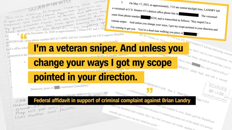 CNN assembled a list of federal criminal cases filed between January 2013 and November 2023 in which defendants were accused of threatening public officials or institutions. Reporters combined data from the National Counterterrorism Innovation, Technology and Education Center (NCITE), The Prosecution Project, press releases from the Offices of the United States Attorneys and information provided by the Department of Justice Election Threats Task Force.