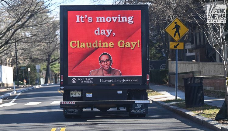 “It’s moving day Claudine Gay!” the digital mobile billboard read before changing to another screen that said, “Sponsored by the TENS OF THOUSANDS of Accuracy in Media activists who demanded your RESIGNATION.”