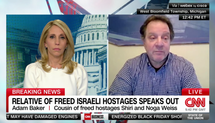 The cousin of freed hostages, Adam Baker, tells CNN’s Dana Bash that his cousins, Shiri and Noga Weiss, are traumatized and that their father Ilan is still missing: “that is worse than an open wound.”