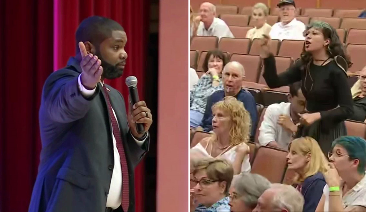 A protester was captured on video yelling at Rep. Byron Donalds and being escorted away by security during a town hall hosted by the Florida Republican.