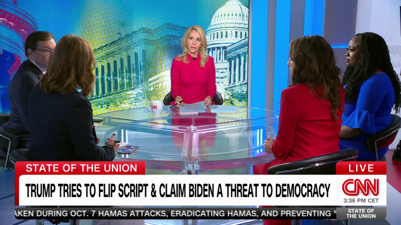 On CNN’s State of the Union with Dana Bash, CNN political commentators Alyssa Farah Griffin, Kate Bedingfield, Ashley Allison, and Republican strategist Brad Todd react to Donald Trump’s attempt to flip the script on President Biden calling him a threat to democracy, as well as Nikki Haley and Ron DeSantis’ fight for second place.