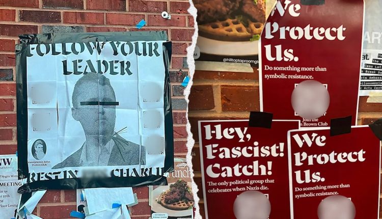 The posters were taped up Thursday night in Georgetown’s central Red Square, the school’s main free speech zone. They also carried QR codes and the seal of the “Georgetown John Brown Club,” a group tied to leftist activism and past violence.