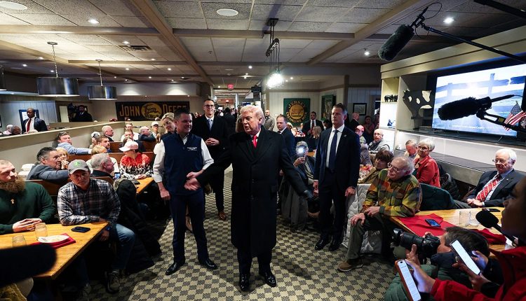 President Donald Trump paused during a restaurant stop in Iowa after a patron asked if he could pray for him ahead of the president’s remarks near Des Moines.