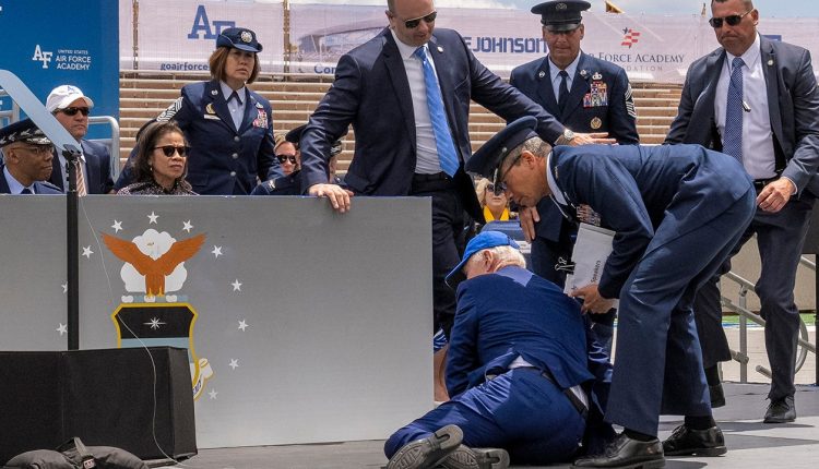 Americans have seen Biden trip and fall previously, most often on the steps leading up to Air Force One, but his tumble at the Air Force Academy was by far the most drastic of his presidency so far. Secret Service and military members nearby rushed to lift the president off the ground.