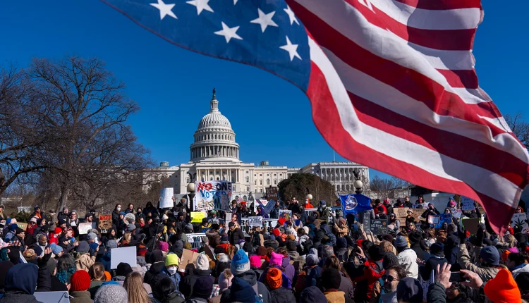 Jerome Bobowski, a girl dad from Detroit, led a “Where is Congress?” chant at the Washington, D.C., rally. He said he protested to protect his daughters’ rights.