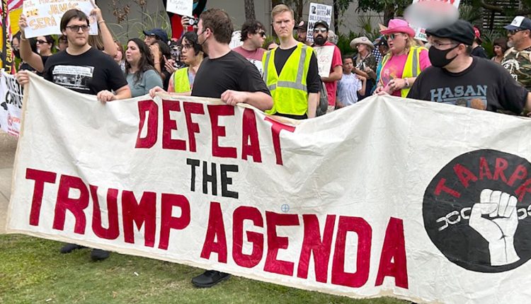 The protesters accused TPUSA of “turning our city into the staging ground for its largest youth indoctrination summit of the year … to spread an extremist agenda across schools, universities, and communities.”