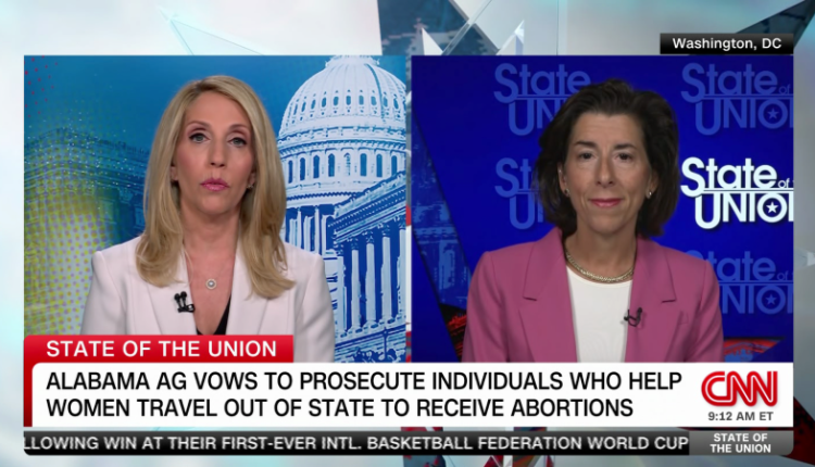Commerce Secretary Gina Raimondo tells CNN’s Dana Bash that abortion restrictions are a “very poor decision” because businesses aren’t going to want to do business in those states.