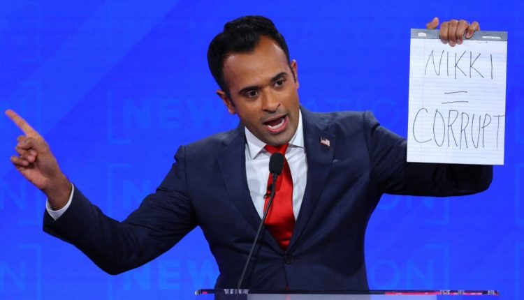 “I don’t have a woman problem,” Ramaswamy told Haley as part of an attack criticizing her work in the military contracting sector after her time as ambassador. “You have a corruption problem and I think that that’s what people need to know. Nikki is corrupt.”