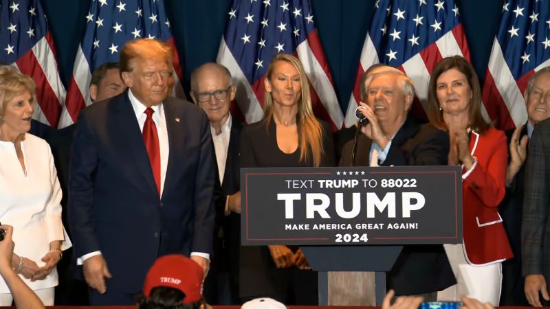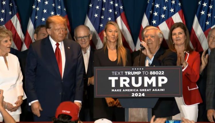 Some in crowd boo Lindsey Graham at Trump victory speech event