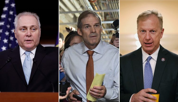 Majority Leader Steve Scalise, R-La., Judiciary Chair Jim Jordan, R-Ohio, and Republican Study Committee Chair Kevin Hern, R-Okla., are pitching themselves to lead the House of Representatives, which is run by a highly fractured House GOP majority.