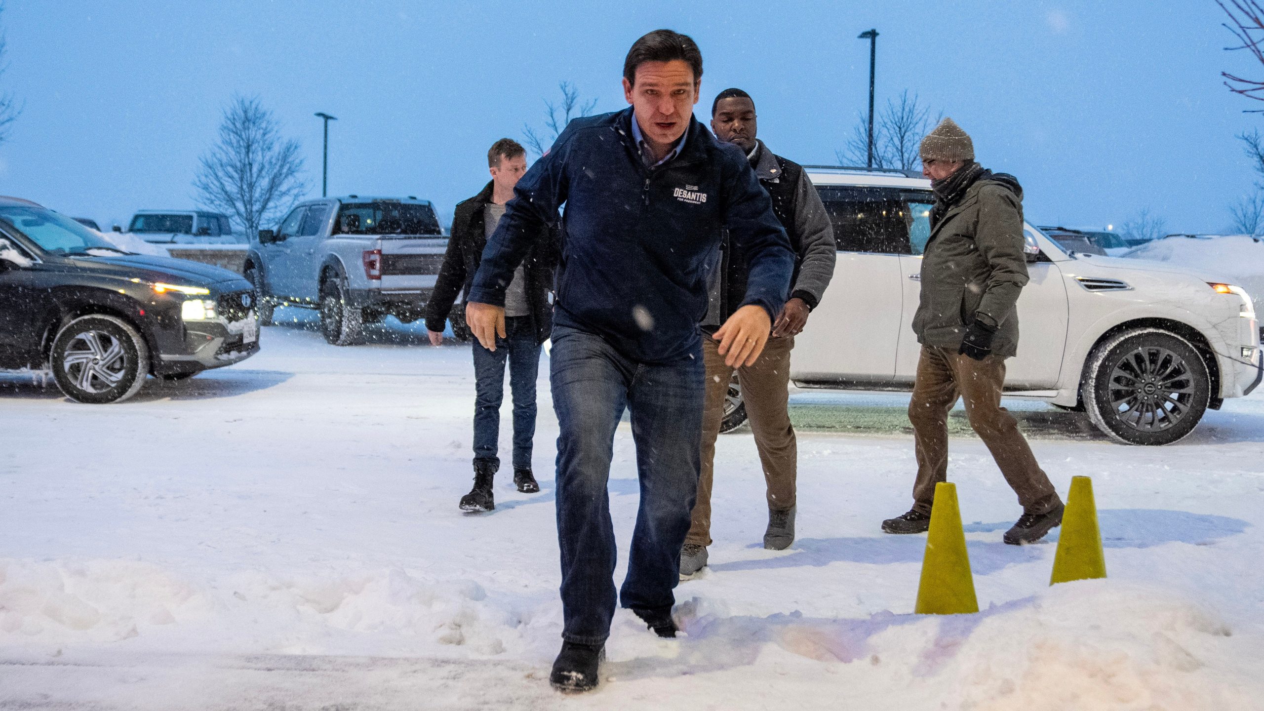 The blast of winter weather didn’t stop Florida Gov. Ron DeSantis from holding an early morning event Friday in suburban Des Moines.