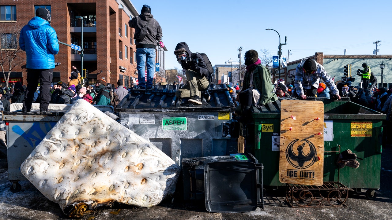 By early evening, the narrative had coalesced into a chorus of voices within the far-left propaganda apparatus, adopting charged historical language to brand federal officials as Nazi-like figures. At 4:12 p.m. ET, Calla Walsh, a controversial communist activist filmed this past summer in Iran shouting, “Death to America! Death to Israel!” shared a 32-second video showing barricades built with Republic Services dumpsters.