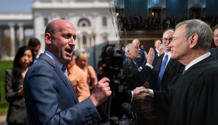 A pro-Trump legal group founded by White House aide Stephen Miller is suing Supreme Court Chief Justice John Roberts — a long-shot move as Trump allies fight court rulings blocking key actions from the Oval Office.