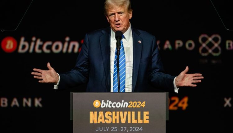 Former President Donald Trump’s remarks to the annual Bitcoin conference on Saturday were delayed for about an hour after two individuals were removed from the premises for “not following proper entry protocols,” the United States Secret Service said.