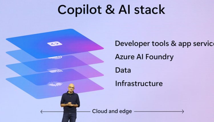 CEO Satya Nadella’s keynote opened by reflecting on past technological milestones, comparing the current rise of AI to pivotal moments like the launch of Windows 3.1 and the growth of cloud computing.