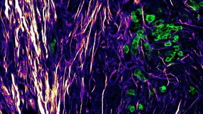 They saw that extracellular matrix fibres at the outer edges of tumours pointed away from the malignancy, providing a “track” for the cancer to follow to spread. In addition, the tumour cells in that region were rounded in shape — a common feature of highly invasive cancers.