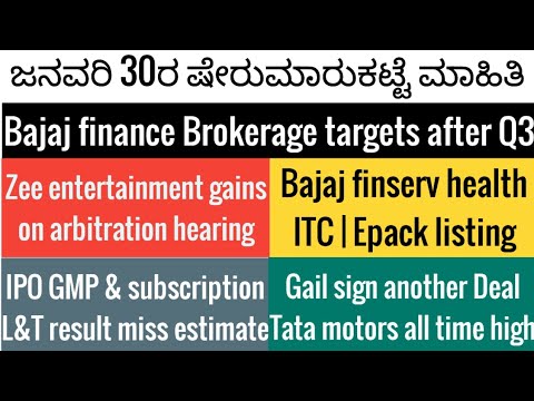 30 January stock market news|ITC|Bajaj finserv|Bajaj finance|Zee|IPO GMP|tata motors|L&T|Gail|Epack