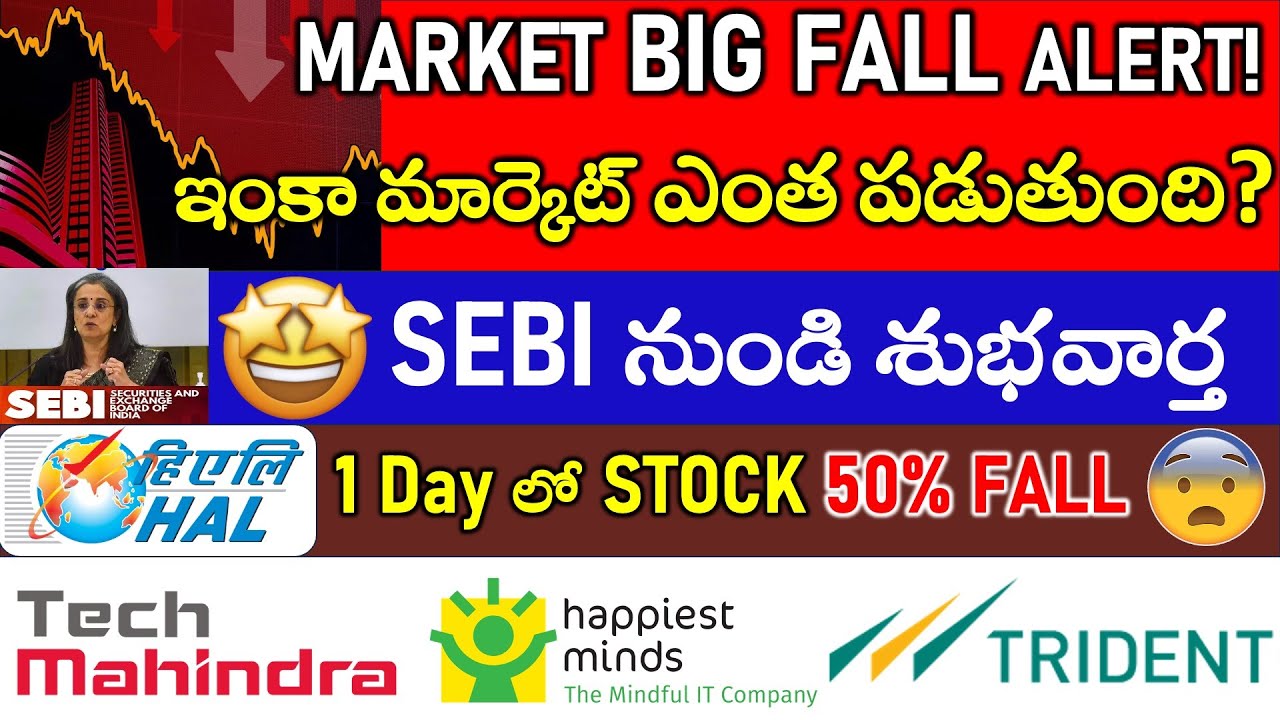 Market BIG FALL 3 ALERTS! Sebi Good news, HAL Stock 50% FALL, Trident stock,Tech Mahindra stock fall